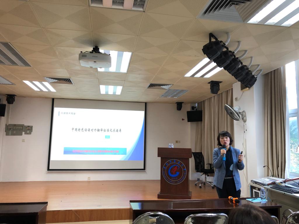 2019年11月28日下午,西安外国语大学高翻学院赵毅慧教授应邀来我院开展以“机器口译与人工口译的价值关系研究”为主题的学术讲座。赵教授是CAIT口译教学与技术研究小组核心成员,陕西省高端翻译人才库首席译员(英语),具有国际会议口译经验四百余场。讲座由外国语学院院长苏红主持。学院党总支书记赵鹏图、副书记李明希、副院长龚隆勤及全院教师聆听了该讲座。