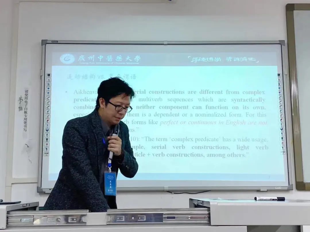 美国语言学家萨丕尔曾在其著作《语言论》中指出:“语言不能脱离文化而存在,也就是说不能脱离社会流传下来,它决定我们生活风貌和信仰的总体。”语言学研习更不能脱离实际。2020年10月,由国家中医药管理局、粤港澳大湾区建设领导小组办公室、广东省人民政府共同印发的《粤港澳大湾区中医药高地建设方案(2020-2025年)》指出要“助力‘一带一路’,打造(中医药)国际化高地”。共建“一带一路”的“五通”中特别强调“民心相通”,而促成民心相通的关键是语言文化间的积极互动。那么,“一带一路”沿线149个国家的语言国情究竟如何?这些国家有哪些官方语言?这些语言有什么特点和文化意义?如何学习这些语言从而与这些国家的人们进行良好的沟通交流?想要实现中医药国际化,将中医药文化传播到“一带一路”沿线国家和地区,这些都是需要深思熟虑的。曾俊敏作为广中医大家庭的一员,深感自己责无旁贷。他专门开设了《一带一路沿线语言国情》的课程,他想把他对于世界语言的所见、所想都传道授业解惑给同学们。他也期望同学们不仅要有语言意识,也要有时代的敏感性,有深邃的思想和辽阔的视野。