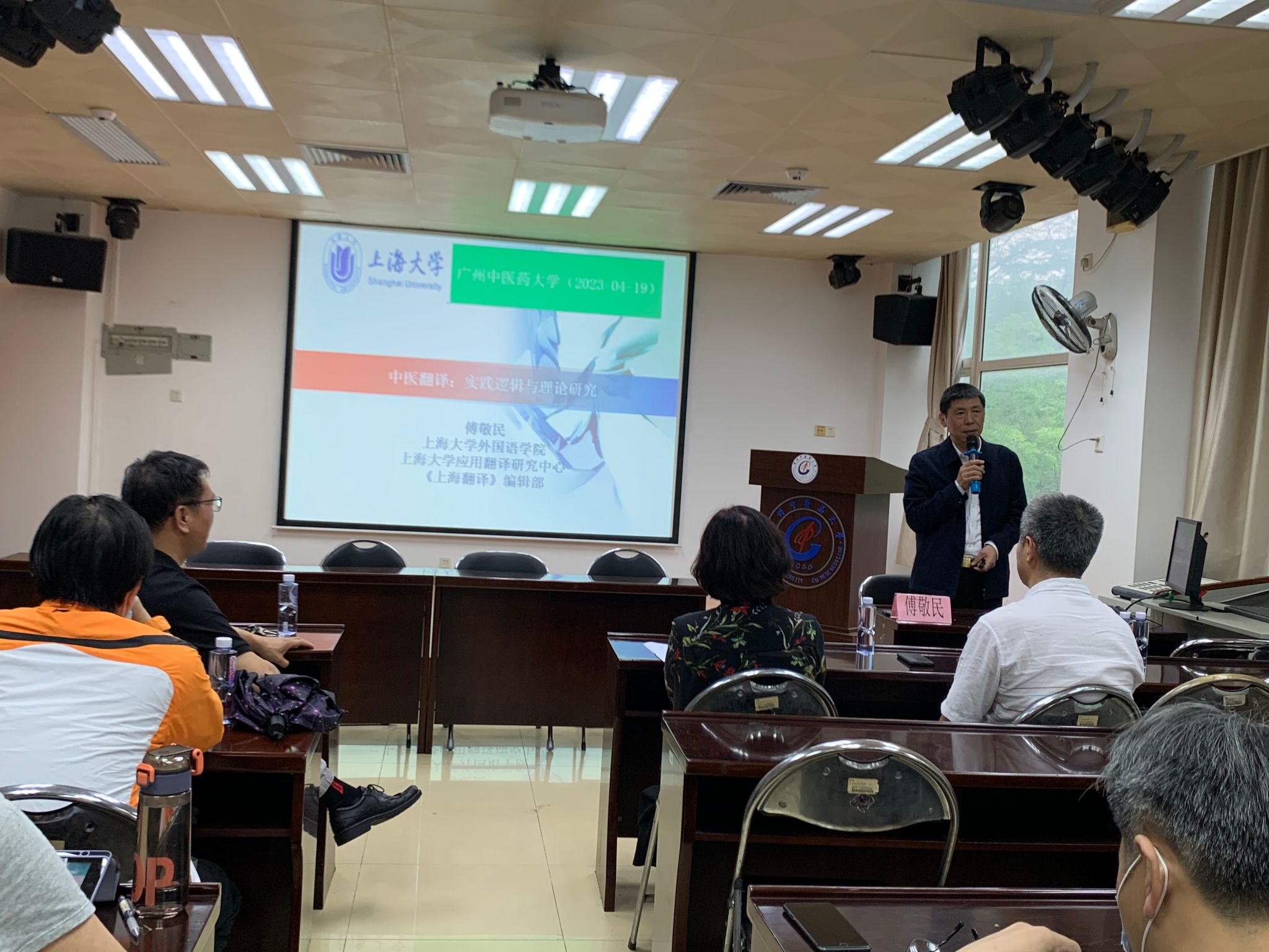 4月19日下午,上海大学博士生导师、《上海翻译》主编傅敬民教授应邀为我校师生作题为“中医翻译:实践逻辑与理论研究”讲座,讲坛由学校教师发展中心主办,外国语学院承办,外国语学院苏红院长主持。