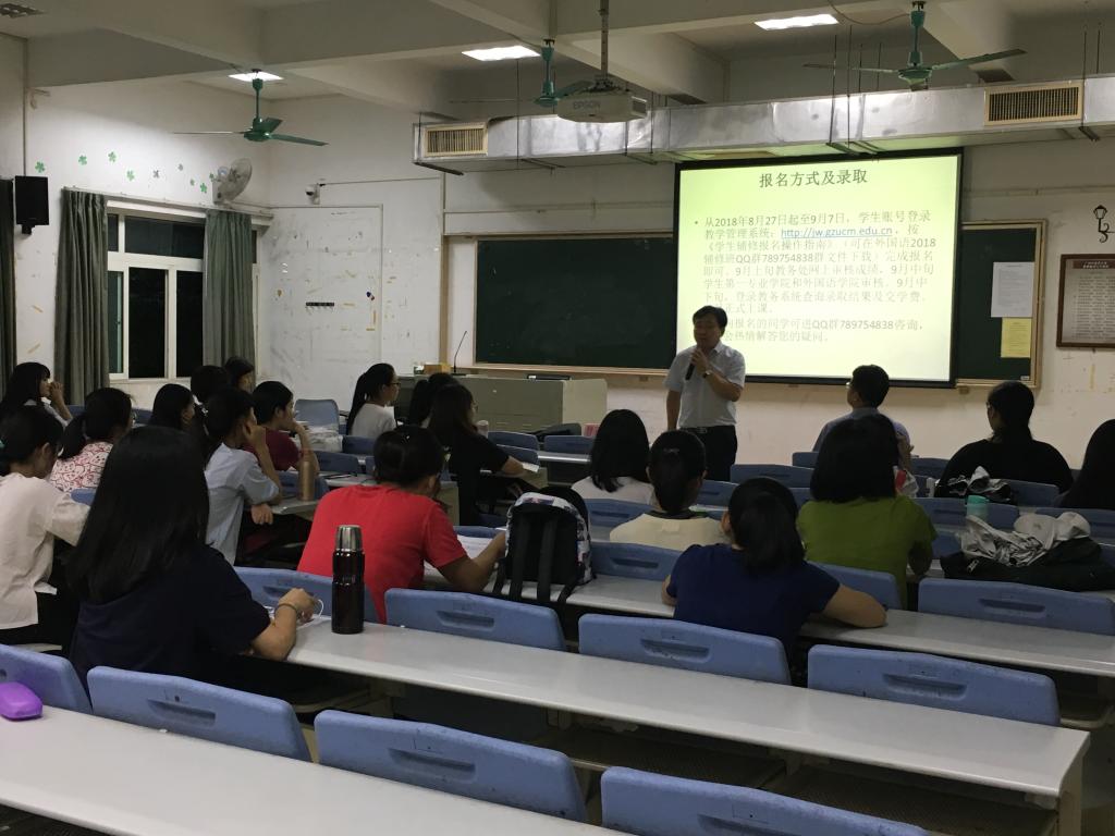 苏红院长向与会的同学介绍英语专业辅修班的课程设置、师资力量、报名方式等,并介绍学习英语的重要性和必要性。马主任讲述了辅修英语专业的潜力和竞争力。