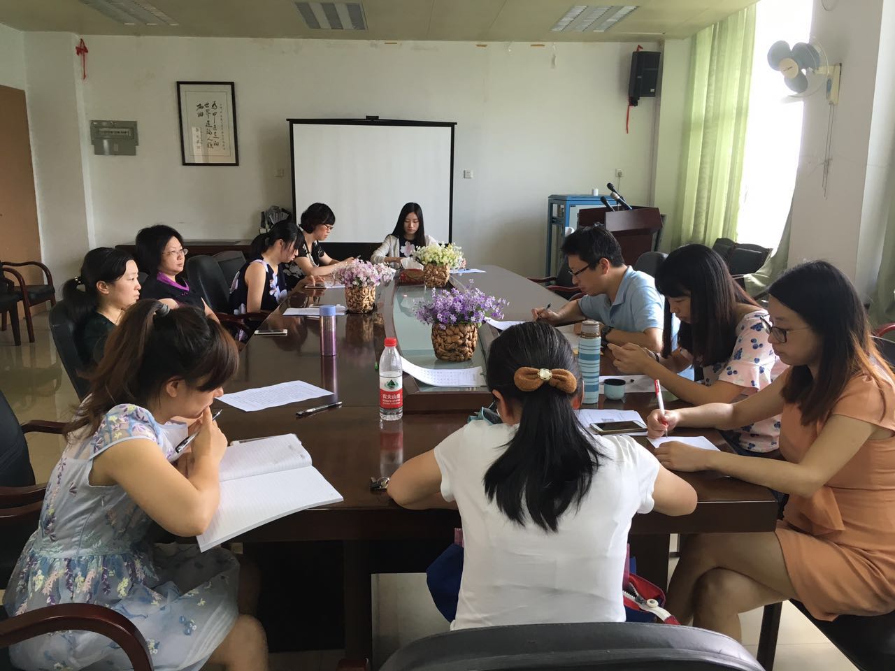 2016年5月25日中午,外国语学院教工第一党支部在人文楼401召开了“党员标准大讨论”主题生活会。教师党员们先学习了中央提出的“四讲四有”要求和“四有”好老师的标准,然后根据自己的工作岗位展开了分组讨论。最后各讨论小组交流了结果,形成了本支部的党员标准。党员教师们表示,在今后的学习工作中要严格按照党员标准要求自己, 立足本职岗位,敬业修德,肩负起当代共产党人的历史使命。