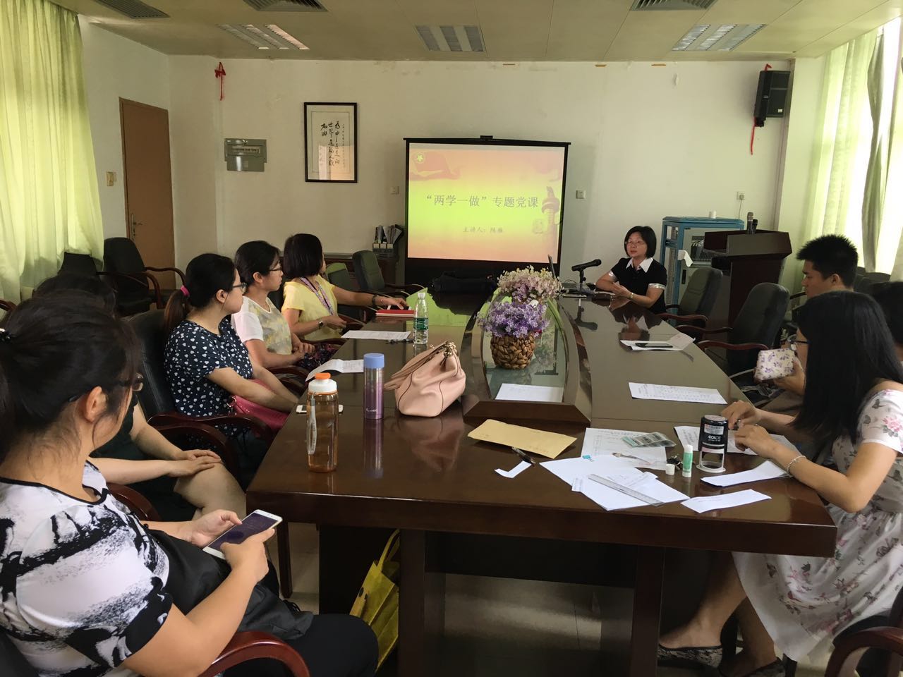 本次专题学习内容分为两部分进行。首先,陈雁书记以“微党课”的形式针对“两学一做”是什么,为什么开展“两学一做”,以及怎么开展“两学一做”三个问题进行了简要阐述。接着,全体教工党员观看《与时俱进话党章》纪录片,对党章的历史发展进程及内涵实质有了全面清晰的认识和了解。