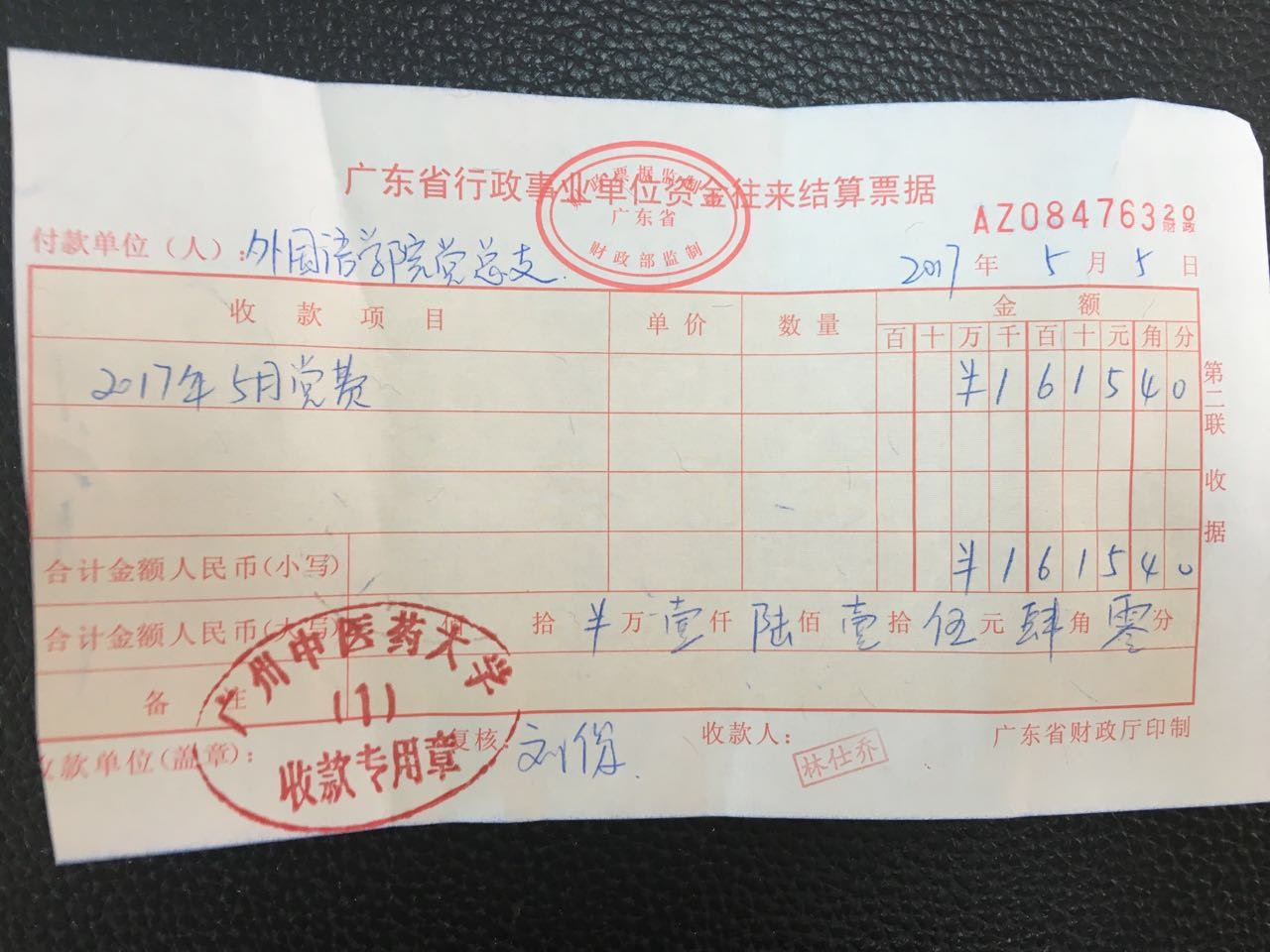 外国语学院党总支2017年5月上交党费收据