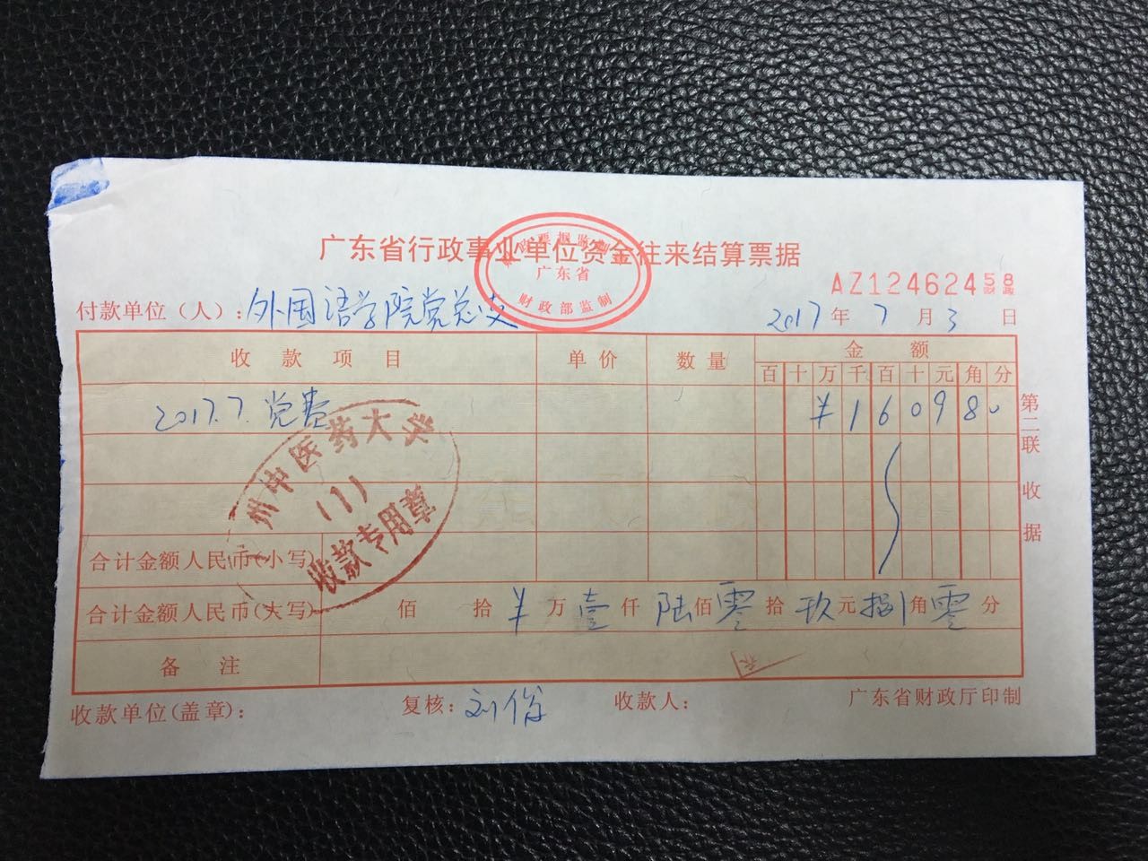 外国语学院党总支2017年7月上交党费收据