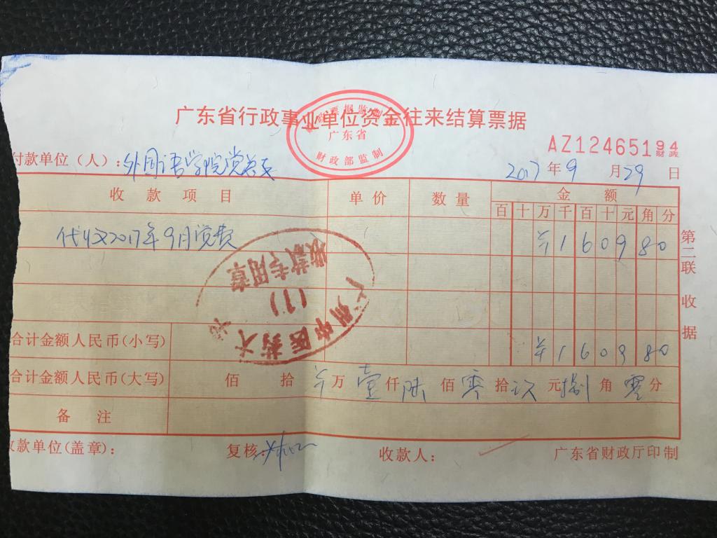 外国语学院党总支2017年9月上交党费收据