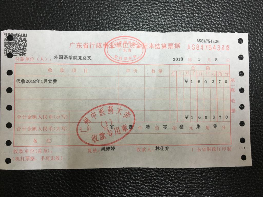 外国语学院党总支2018年1月上交党费收据
