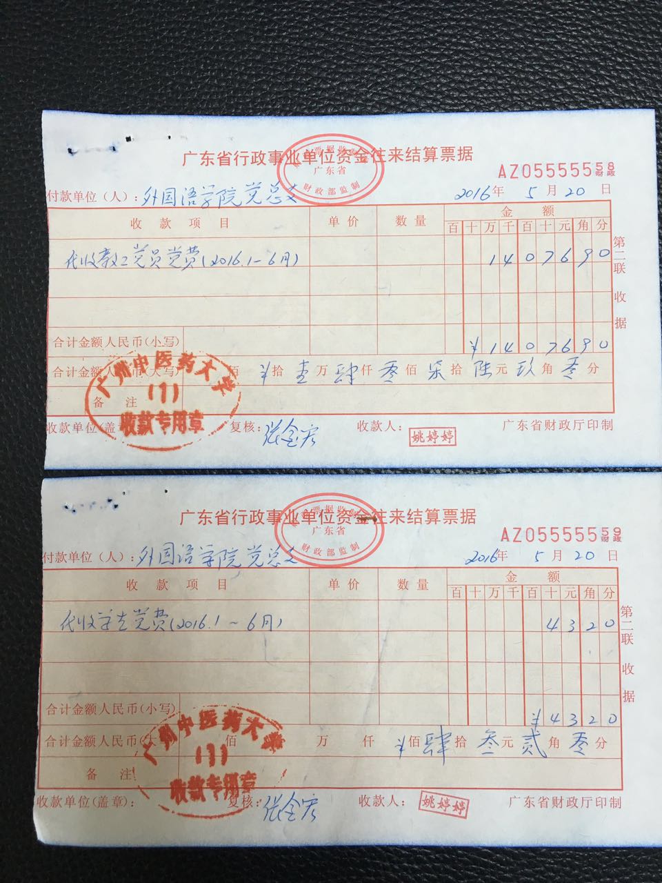 外国语学院党总支2016年1月至6月上交党费收据