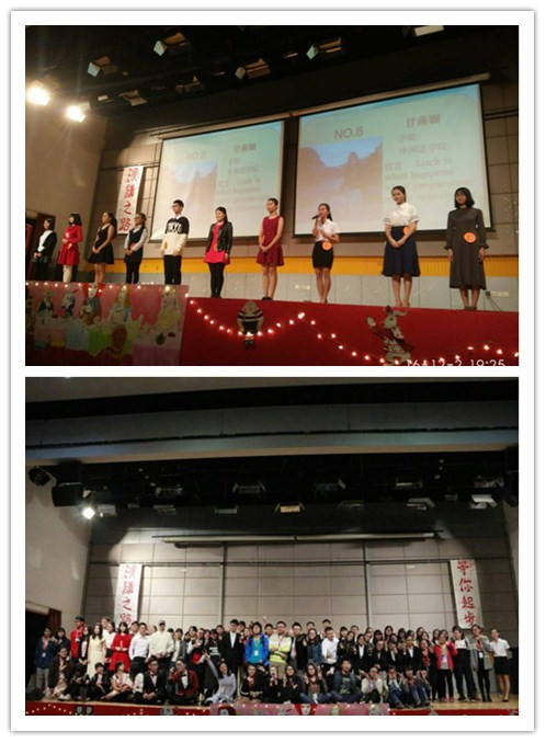 为了进一步弘扬和发展人文精神,提升学生的专业素养,由马克思主义学院和外国语学院联合举办的英语演讲大赛决赛于12月2日晚7点在国际会议厅拉开帷幕。本次英语演讲大赛历经一个多月的海选和初赛,最终有十位选手进入本次决赛,决赛的评委分别由外国语学院龚隆勤副院长,英专教研室孙娟老师、甄葭老师、田婧老师,以及外教Daniel老师担任,参加本次比赛的嘉宾还有外国语学院程宾副书记,学工办苏淑婉老师、汪蓓蓓老师。