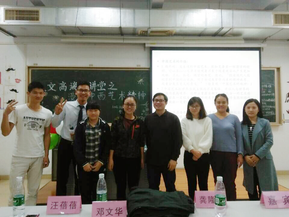 2016年12月6日晚7点,由马克思主义学院和外国语学院共同举办的第十届人文精神活动月系列讲座之“漫谈中西艺术的精神”于教学楼A308顺利召开。开幕式邀请了南方医科大学外国语学院邓文华教授担任主讲人,莅临本场讲座的嘉宾有外国语学院龚隆勤副院长,英专教研室周佳媛老师、甄葭老师,以及学工办苏淑婉老师、汪蓓蓓老师。