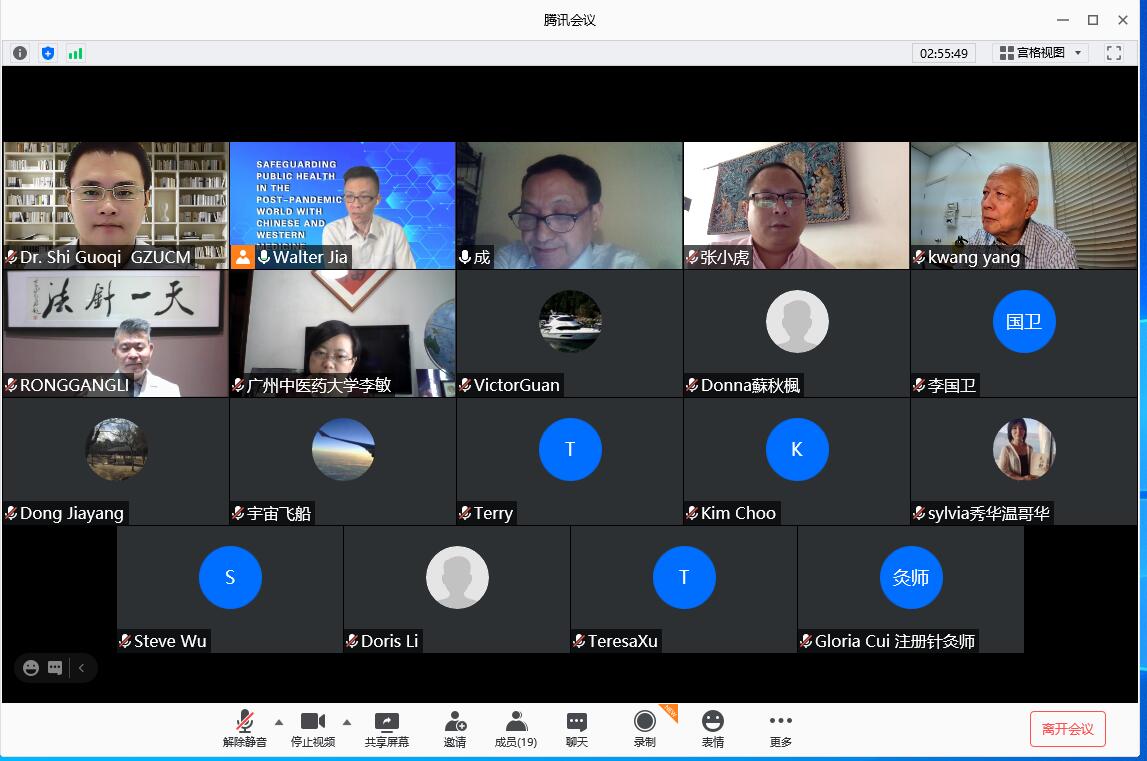 石博士首先在分享中回顾新冠病毒肺炎疫情在全球的蔓延和对全世界人民生命安全和身体健康构成的严重威胁。在疫情重灾区的欧美国家,越来越多的所谓“康复”患者出现了诸多后遗症,而且心理也受到了极大伤害,而中医针灸在预防疾病、治疗慢性病、老年病和促进各种后遗症的康复方面具有独特优势。其次,石博士详细介绍了中国及广东省在抗击新冠肺炎过程中临床上所应用的中医药干预手段和取得的疗效,介绍了我校科研团队对疫情的相关研究进展和发表论文情况,并从针灸抗抑郁的作用机理机制角度探讨针灸对后疫情时代重建大众心理健康的重要意义。最后,石博士分享了伟德国际1946作为高校在防控疫情、保证学生健康和复课复学方面采取的具体措施和所取得的良好成效,为后疫情时代北美地区高等学校分享了广中医经验。
