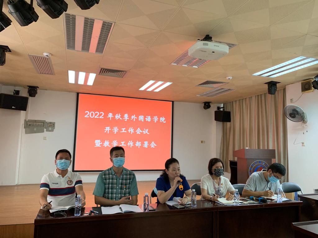苏红院长首先向全院教师通报假期前后学校的主要相关工作会议精神尤其是中层干部读书班学习情况,着重谈到学校“十四五”规划要点和高质量发展的要义以及外语学科建设切入点;着重通报了书记、校长等校领导在读书班上的讲话精神,强调了在学校高质量发展建设态势下外语学科面临的挑战以及积极应变求变的重要性。其次,介绍了新学期的工作要点,着重强调了外语教育课程思政立德树人的重要性;按照教育部新要求将《习近平谈治国理政》双语版本有机融入外语教学课程思政教改,同时将根据学校人才培养改革新要求进一步推动课程优化和团队建设。