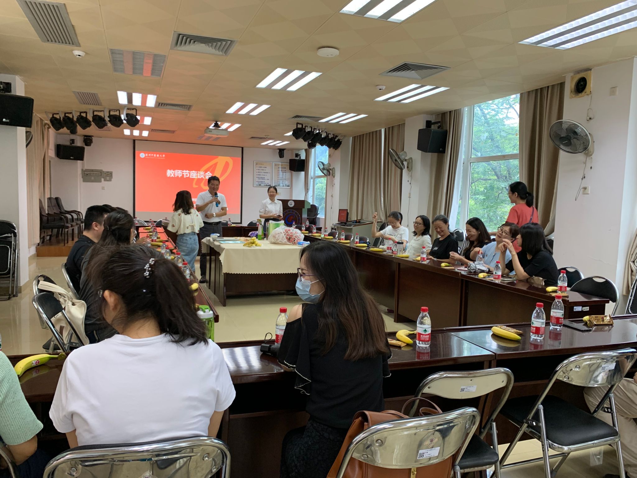 2024年9月5日,在教师节即将来临前夕,我院举办教师节座谈会暨教职工生日会。学院领导向每一位老师献花,会场也准备了生日蛋糕和水果零食等,老师们欢度教师节的同时,也为上半年过生日的老师们送上生日祝福。大家欢聚一堂,感受组织的温暖,大家纷纷表达要践行立德树人任务,坚定理想信念,牢记为党育人、为国育才初心和使命,躬耕教坛,为建设教育强国作出贡献。