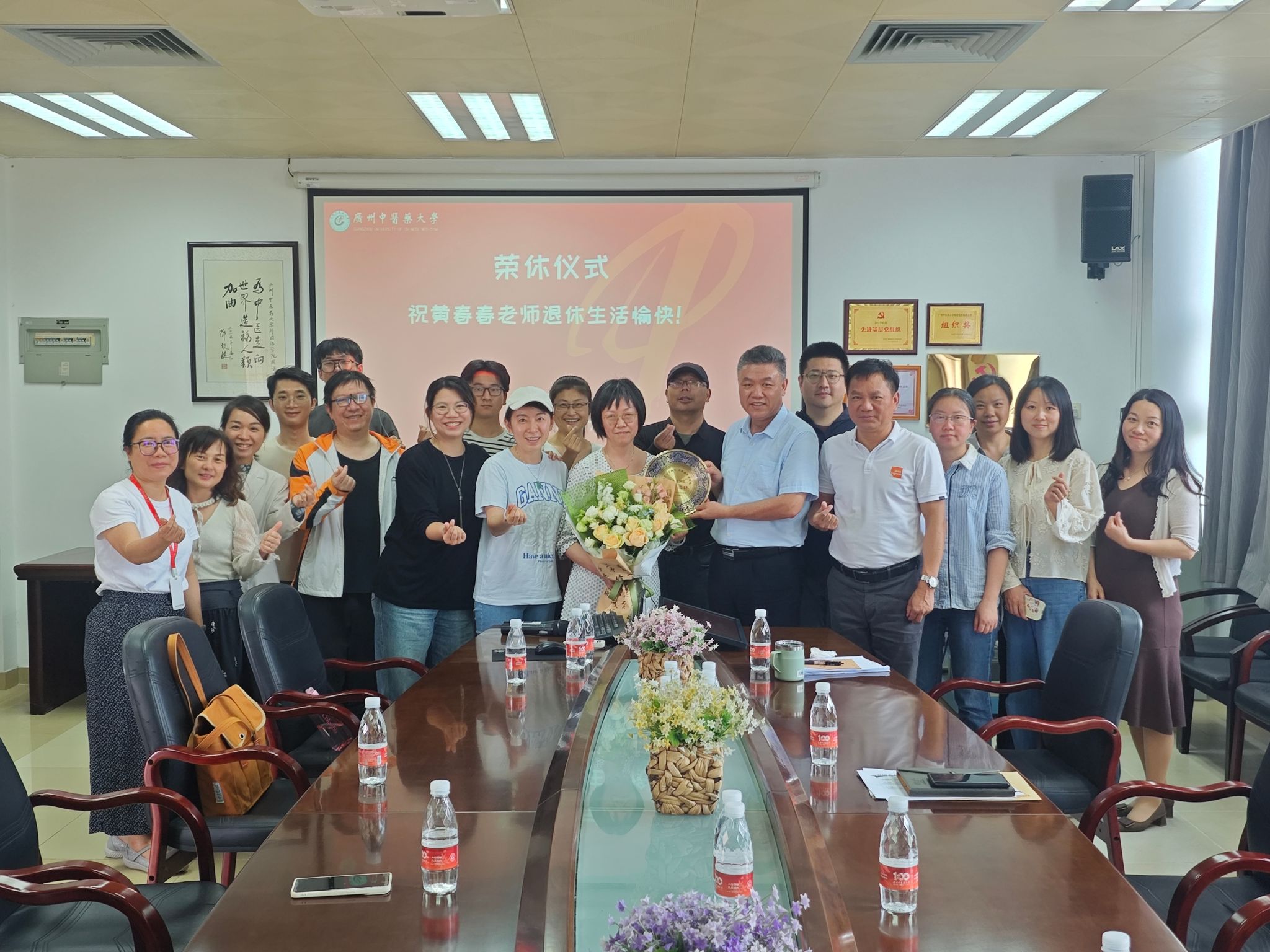 2025年4月17日下午,学院工会为黄春春老师在人文楼401举行了荣休仪式。学院工会主席王宏书记表示,黄春春老师始终坚守教学岗位,默默耕耘、无私奉献,将青春与热忱倾注于教书育人事业,他代表全体师生向黄老师表达了崇高敬意与深切感激。随后,大家纷纷与黄老师合影留念,祝愿黄老师退休生活美满幸福。