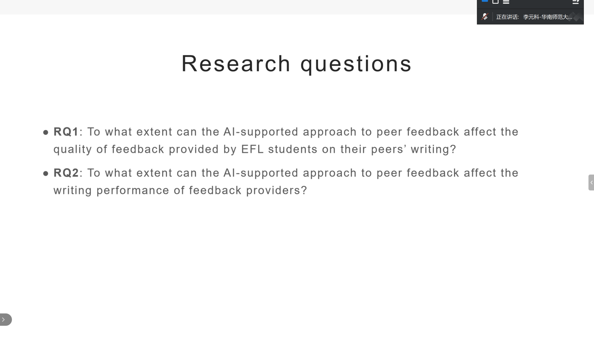 2025年9月26日下午2:30,华南师范大学外国语言文化学院李元科教授为外国语学院师生带来了一场主题为“利用AI开展智慧外语教学和研究”的线上主题讲座,讲座还吸引了来自北京大学、南开大学、中山大学、广东外语外贸大学等十余所高校近百名师生的关注和积极参与。讲座由外国语学院副院长陈媛主持。
