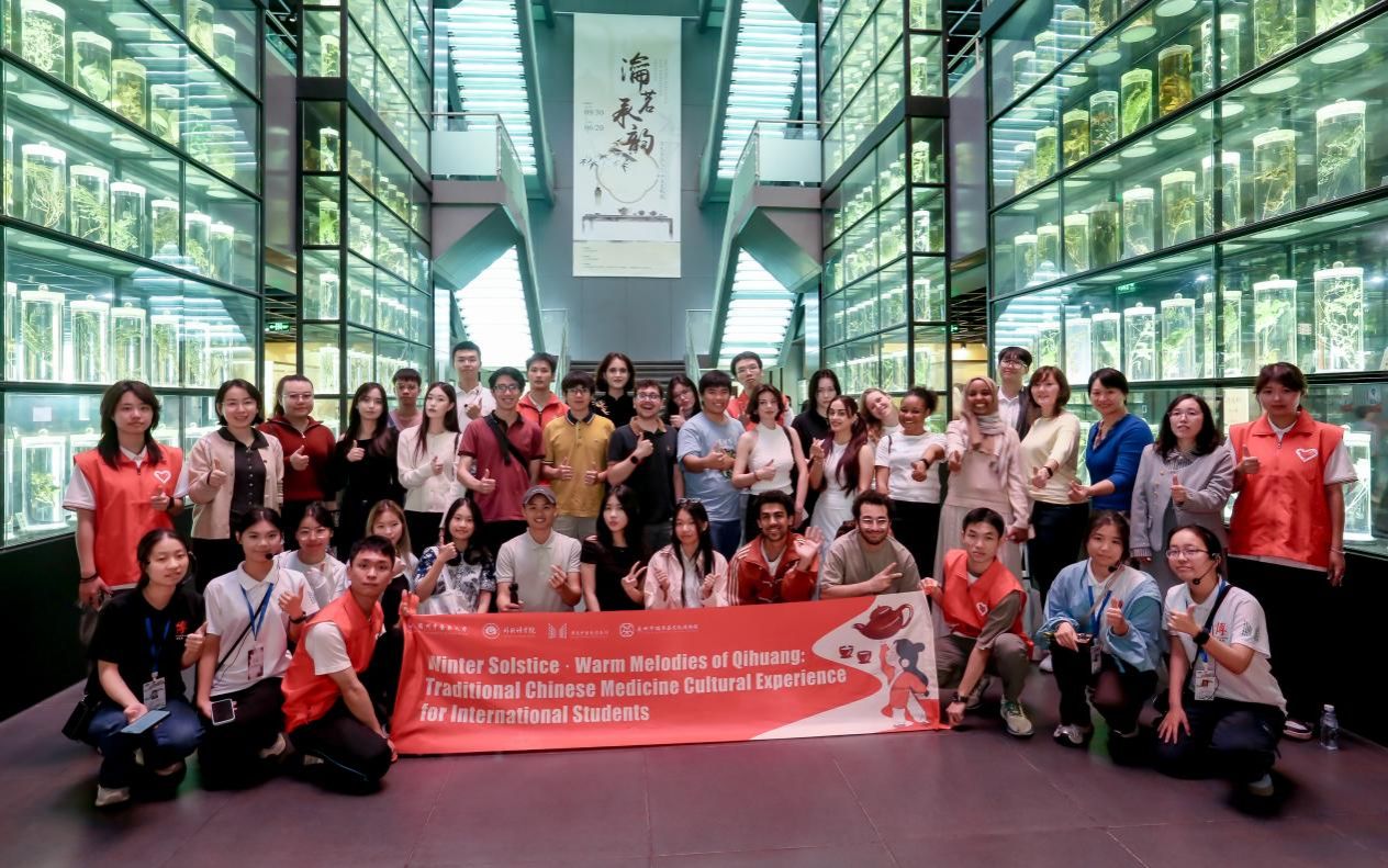 2025年12月21日冬至,由伟德国际1946外国语学院(伟德国际1946中医药翻译与国际传播中心)、广东中医药博物馆、数字中医药文化研究与传播创新重点实验室及广州市瑞丰茶文化博物馆联合主办的“冬至·岐黄暖韵”中医药跨文化交流活动在广东中医药博物馆成功举办。来自华南理工大学与华南师范大学的24名国际学生(分别来自全球15个国家),与伟德国际1946外国语学院英语(中医药国际传播)专业的学生齐聚一堂,共同参与了茶艺体验、中医药文化探访等丰富多彩的跨文化交流活动。