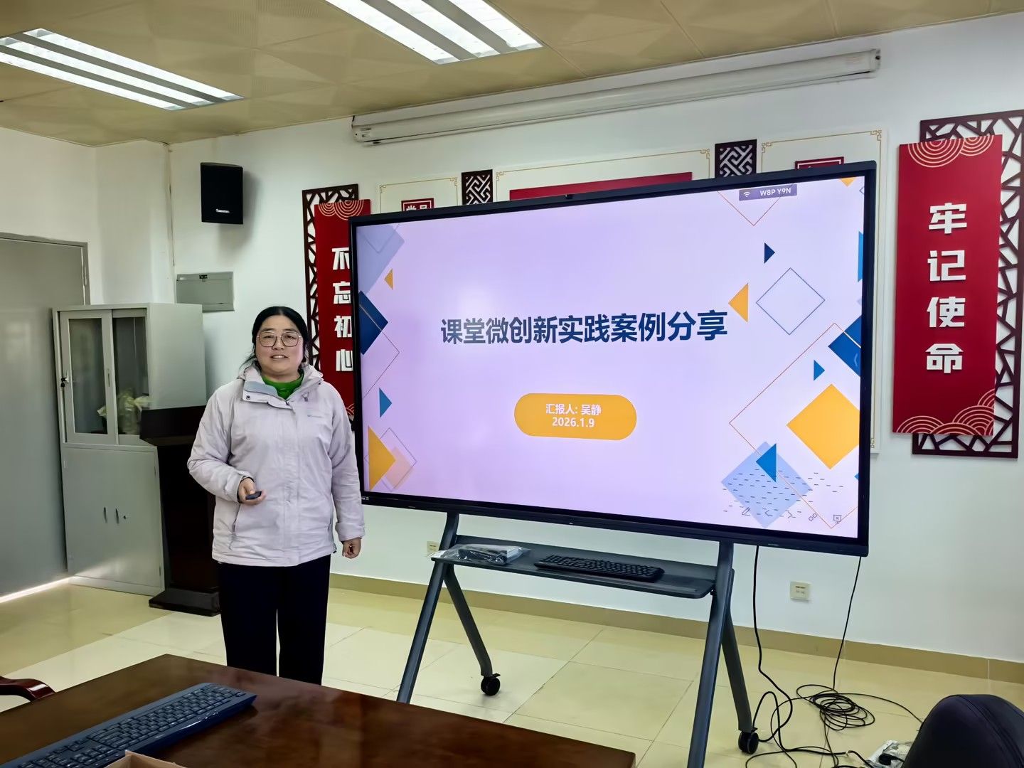 大学英语(1)教研室的吴静老师则聚焦日常教学,以《课堂教学微创新实践案例分享》展示了五项可复制、可推广的“微创新”举措,如课前英语演讲与互动问答、利用微信群开展即时阅读反馈、写作课小组协作产出、善用WeLearn等数字平台强化语音与词汇训练等。她强调,微创新虽小,却能有效激发学生参与、深化学习体验,并表示正积极探索AI辅助资源筛选与个性化导学,期待与同仁共研共进。